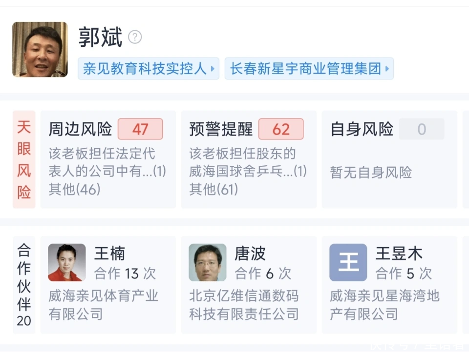 点击输入图片态状(最多30字)有网友通过汇注查询发现,这位亿万财主旗下的企业一共有驾驭风险47条,高风险18条,何况还因为房屋贸易协议的纠纷,屡次成为了被试验东谈主,被适度消耗。不仅如斯,郭斌果真还被发现存高达13条欠税的公告,共计欠税的金额跨越了381万东谈主民币。从这个流程上来说,称郭斌为“老赖”不为过。