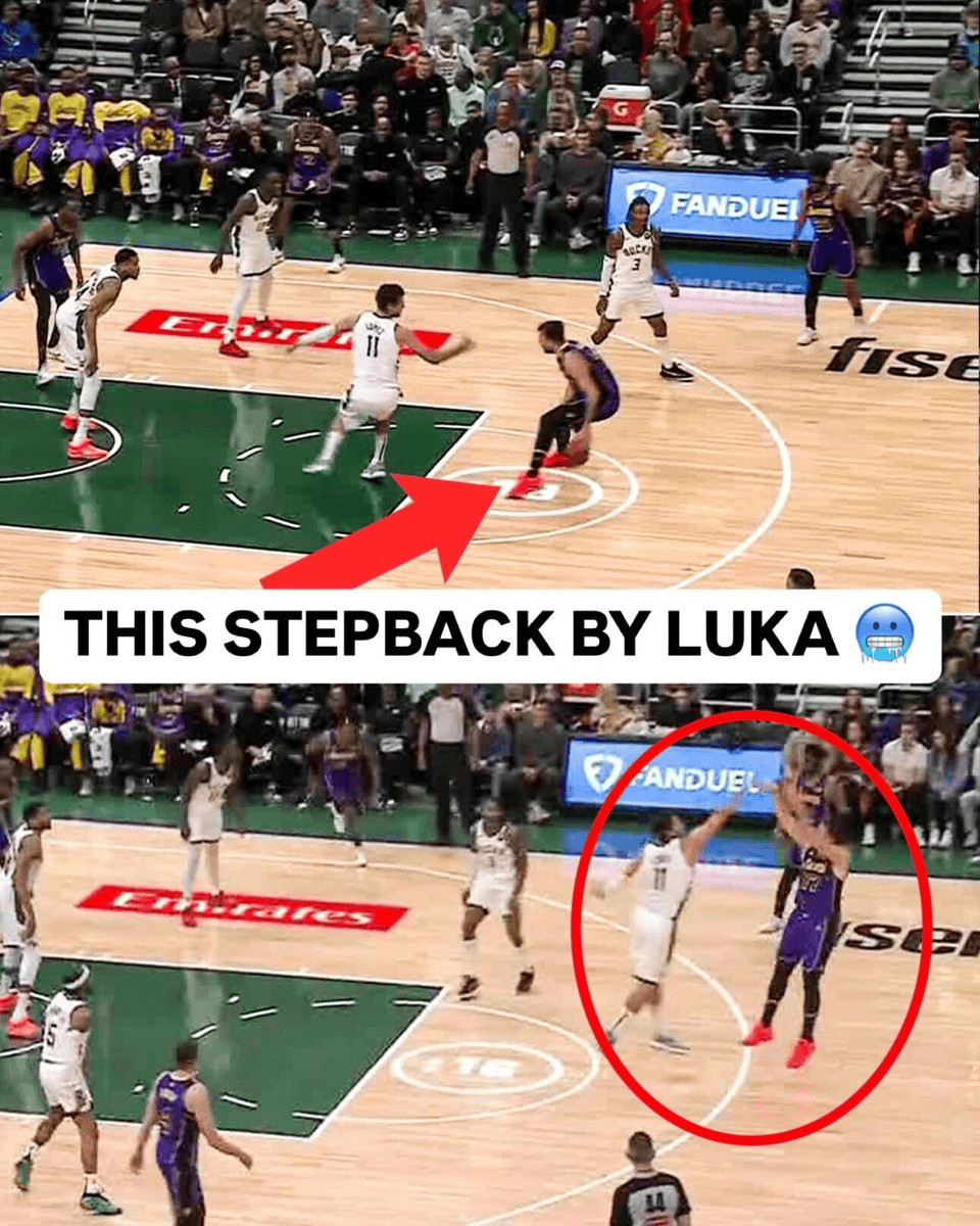 ”东契奇在此次后撤步中创造的空间几乎太离谱了!“体育录像/图片